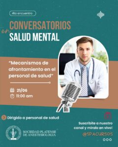 Los encuentros a cargo del Departamento de Bienestar Ocupacional de la Sociedad Platense de Anestesiología (SPA), cuenta con la participación de los doctores Carlos Marcheschi y Diego Sarasola y la licenciada Romina Díaz.